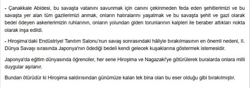 Çanakkale Şehitler Abidesi ve Hiroşima